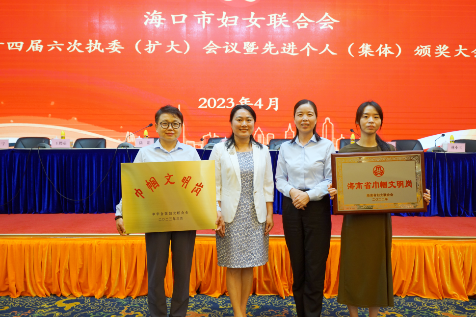 会议期间,大会还代颁了全国、省级妇联荣誉奖项,公司保税厂区制造部包装车间主任闫小玲、班长杨娟代表保税厂区制造部包装车间分别领取了全国巾帼文明岗、海南省巾帼文明岗荣誉奖牌。
