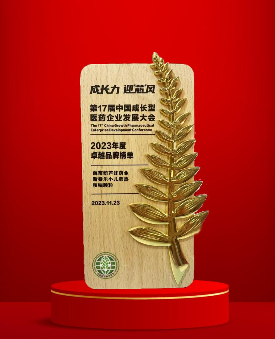 大会期间,一年一度的“金叶奖•2023年度医药行业风云人物奖”榜单重磅揭晓,Vsport药业集团党委书记、董事长刘景萍荣耀上榜。金叶奖是为了表彰广大医药企业家或企业为行业茁壮发展做出的卓越贡献而设立的奖项,“金”象征着品质、品牌、影响力,“叶”象征着生命、健康、成长力。金与叶结合,有“敬业、兢业、竞业”之意。此外,集团黄金单品新费乐®小儿肺热咳喘颗粒凭借卓越的产品质量和品牌影响力赢得了行业、市场和消费者的肯定,获得了“2023年度卓越品牌奖”。